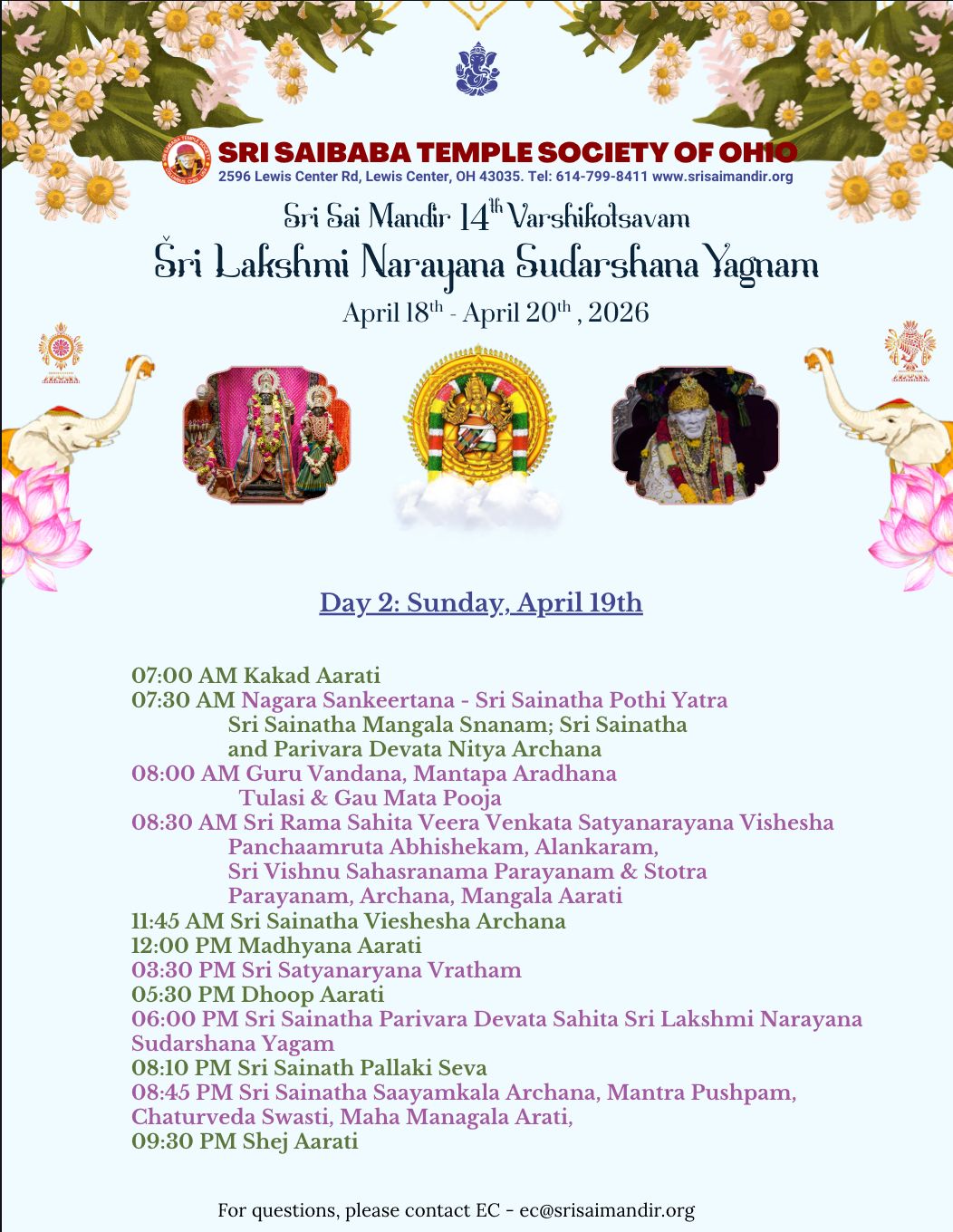 Check the temple Facebook Page for Sai live dharshan and other events. Please like the page to get quick updates and notifications.